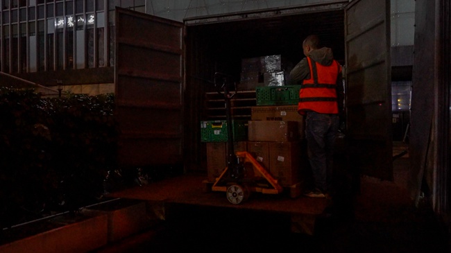 從凌晨2點開始,陸續有運輸車將蔬果、海鮮等商品運送至門店。吳汪洋攝