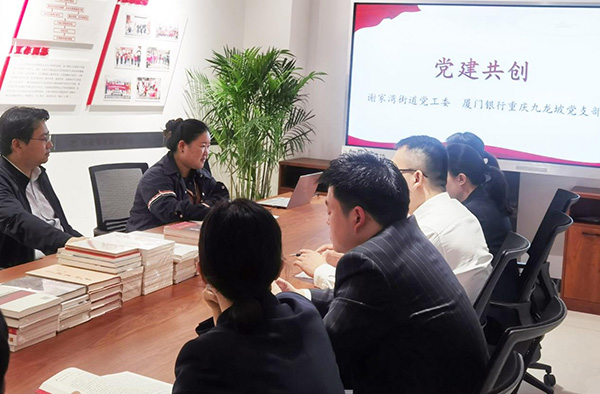 廈門銀行重慶九龍坡支行與謝家灣街道委員會開展黨建共建。廈門銀行重慶分行供圖