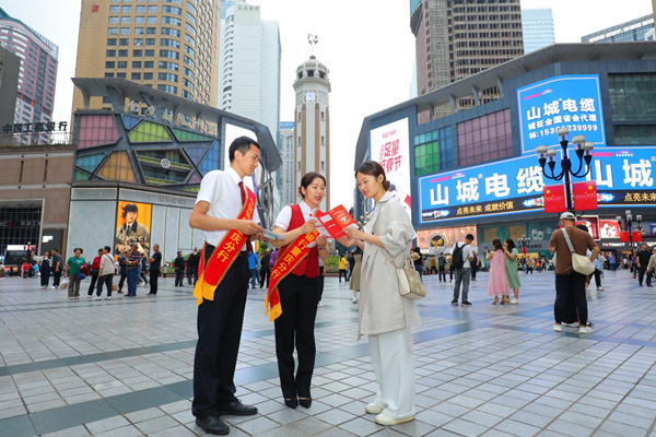 志愿者在中信銀行“紅金渝”金融服務站為市民宣講金融知識。中信銀行重慶分行供圖