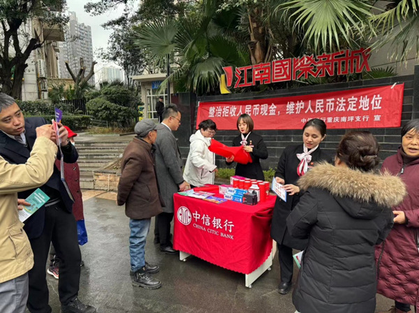為持續貫徹執行整治拒收人民幣現金相關工作要求,保證市場現金使用通暢,建設和諧支付環境,中信銀行重慶分行組織多家支行員工走進社區、企業、鄉村等重點區域,開展整治拒收人民幣現金專項宣傳活動?;顒又攸c聚焦商戶多、居民集中、人流量大的地方,有針對性地為企業、菜市場攤主以及來往居民和商戶宣講,任何工作單位和個人不得以非法理由拒絕使用人民幣現金。