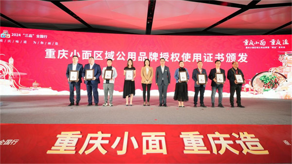 3月20日,重慶小面區域公用品牌暨“爆品”發布會在第110屆全國糖酒商品交易會期間舉行,以井谷元食品為代表的8家小面生產企業獲得重慶小面區域公用品牌授權證書,開啟一碗“可以帶走的重慶小面”新的發展之旅。