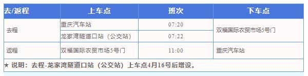 為方便市民到雙福國際農貿市場購物,重慶汽車站在原來的石門線路上,新增“雙福國際農貿市場(往返)”站點,票價15元/人(含去程一次,去程當天的返程一次)。