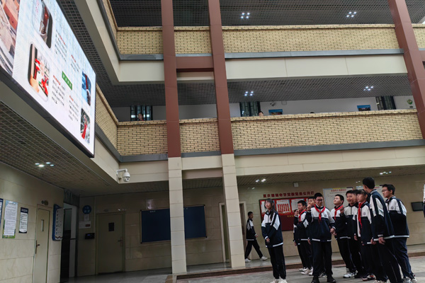 學生在LED屏前學習安全文明交通出行知識。袁杰攝