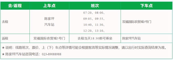 往返15元 去雙福國際農貿城可在陳家坪汽車站坐車
