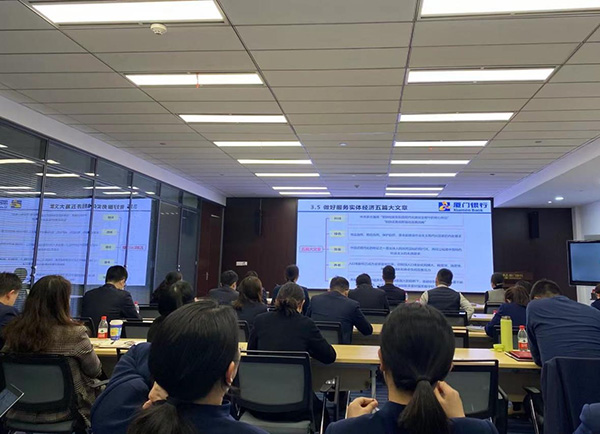 組織學習中央金融工作會議精神。廈門銀行重慶分行供圖