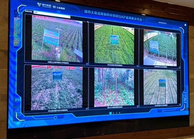 在位于重慶涪陵高新區的太極醫藥城A區,工作人員通過國藥太極中藥材GAP追溯展示平臺,不僅能看到種植基地的實時畫面,還能獲得氣溫、濕度、風向等信息,了解遠在千里之外的20多個中藥材種植基地情況。