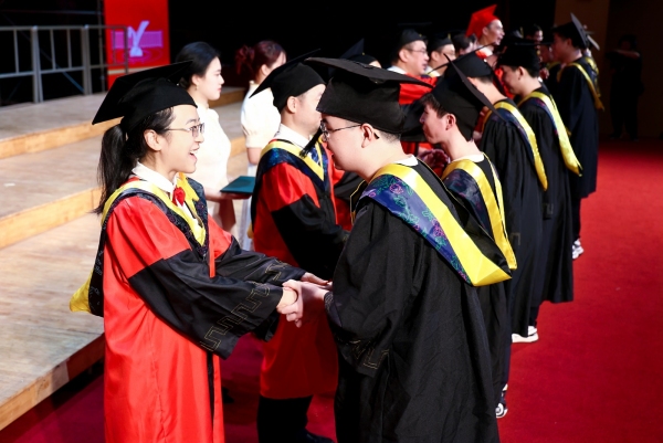 教師代表謝暉以奧林匹克格言“更快、更高、更強、更團結”作為臨別贈言與眾人共勉?!案臁?,要在社會的廣闊舞臺上有更快的適應力,在奮斗中實現人生價值;“更高”,要練就更高的本領,做一個開拓的年輕人;“更強”,要磨礪強健的身心,磨煉出“硬翅膀”和“強心臟”;“更團結”,要做一個善協作的年輕人,一起向未來。