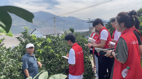當地村民為志愿者講解臍橙的種植流程。重慶城市管理職業學院供圖