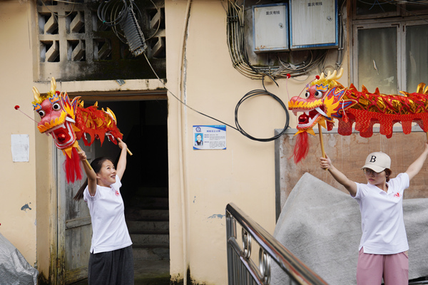 實踐團成員學習舞龍。張笑涵攝
