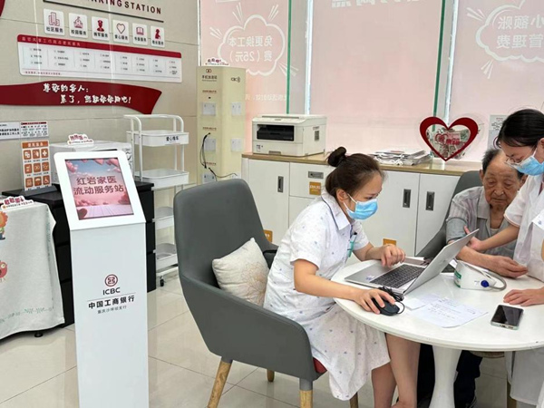 沙坪壩支行與周邊衛生服務中心合作,在網點開展“紅巖家醫流動服務站”活動。工行重慶市分行供圖