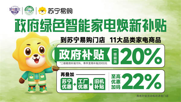 重慶蘇寧推出綠色智能家電補貼政策 最高享20%政府補貼