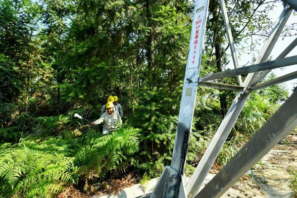 8月27日,國網重慶江津供電公司員工在江津區杜市鎮太公山上,對±800千伏特高壓金塘線、建蘇線開展現場防山火特巡和蹲守,確保電網安全可靠運行。