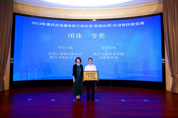 近日,由中國金融工會重慶工作委員會、重慶市銀行業協會、重慶市保險行業協會聯合主辦的重慶市金融業數字化轉型(數據治理)勞動和技能競賽決賽舉行。工商銀行重慶市分行“數字引領普惠金融高質量發展”項目從37個決賽項目中脫穎而出,榮獲團體一等獎。