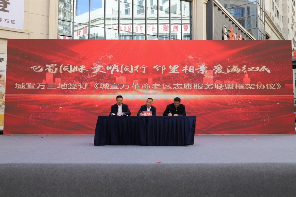 10月22日,重慶市城口縣“紅城志愿”志愿服務聯盟發布儀式暨城口縣“熟人社區”創建啟動儀式、城口縣人民建議征集活動舉行。四川省宣漢縣、萬源市同城口縣聯合簽訂《城宣萬革命老區志愿服務聯盟框架協議》,三地將共同打造“紅城志愿”志愿服務聯盟品牌。