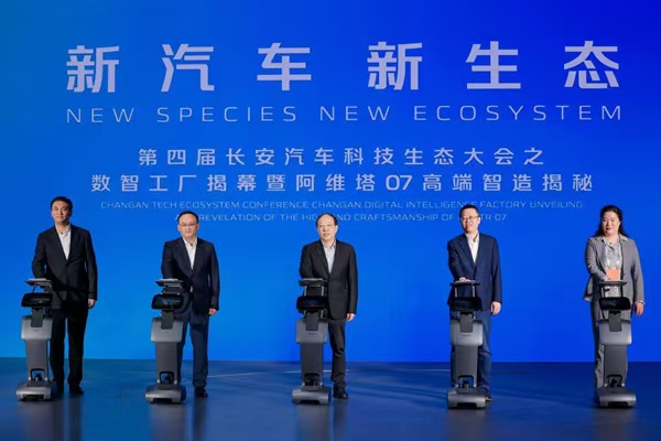 大會現場,中國聯通重慶市分公司總經理覃晟、長安汽車總裁王俊、華為重慶分公司總經理蘇亮等共同為長安數智工廠揭牌,標志著這一行業標桿項目正式進入量產階段。