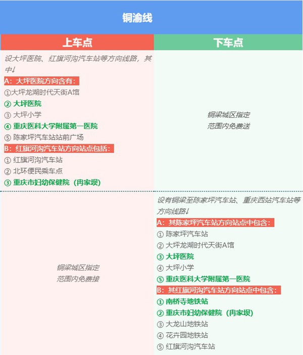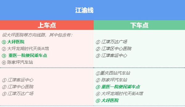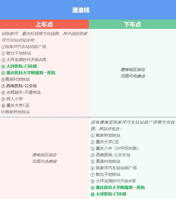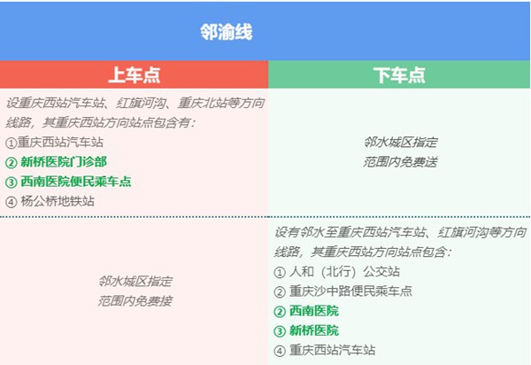 10月24日,愉客行發布了途經醫院的班車線路,方便市民出行就醫。這些班車線路途經西南醫院、新橋醫院、兒童醫院、大坪醫院、重醫一院、婦幼保健院等。