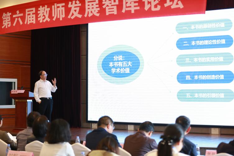 黃明超介紹其主編的《培育教育家型教師的理論模型與實踐探索》。王鑫攝