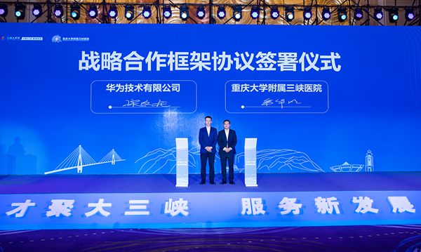 重慶大學附屬三峽醫院與華為技術有限公司簽署戰略合作框架協議。侯本艷攝