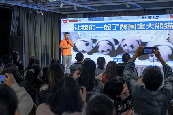 人民網重慶11月4日電 (記者馮文彥)保護大熊貓不僅關乎這一珍稀物種的生存,還涉及到生物多樣性保護、生態平衡維護、科學研究價值、文化意義以及避免滅絕風險等多個方面。3日,“重慶青少年大熊貓守護計劃”系列活動之一——重慶動物園大熊貓飼養員分享會舉行。重慶動物園大熊貓技術主管尹彥強、重慶動物園熊貓館館長張乃成、莽燦燦和莽仔的飼養員鄧沛建以及渝可渝愛的飼養員劉曉出席活動,分享與大熊貓之間的感人故事、飼養經驗及保護心得。