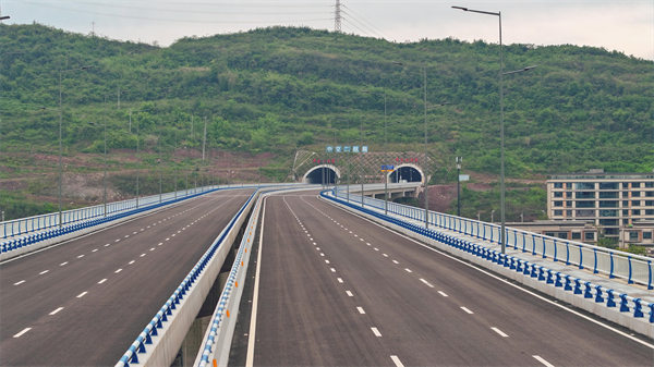 中央公園西路北拓段道路工程是重慶空港新城片區“四橫三縱”城市路網結構的一條重要骨架道路,起于中央公園北側,橫穿悅港大道,止于悅港北路,主要結構物包括2座橋梁、1條隧道,全長2.75km,標準路幅寬度32m,設計車速50km/h,雙向六車道,該項目由中交二航局投資建設。