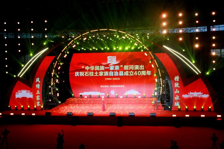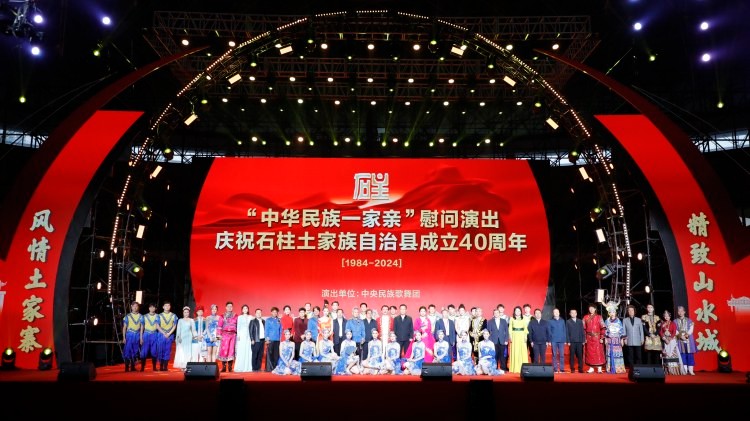 11月16日,中央民族歌舞團“中華民族一家親”慰問演出活動走進石柱土家族自治縣。石柱基層一線職工代表、群眾代表、學生代表等1800人觀看演出。在這場精彩的民族歌舞盛宴中,共同慶祝石柱土家族自治縣成立40周年。