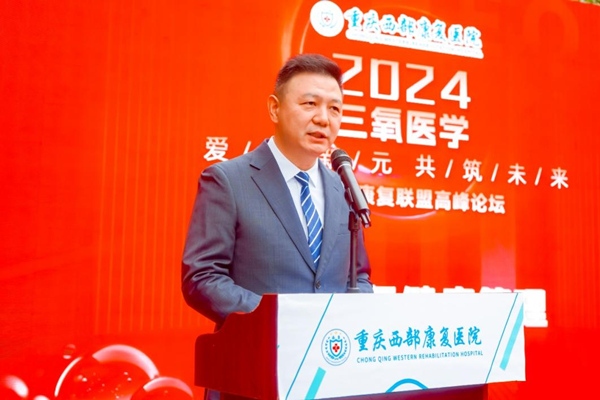 盧佳友致辭。重慶西部康復醫院三氧健康管理中心供圖