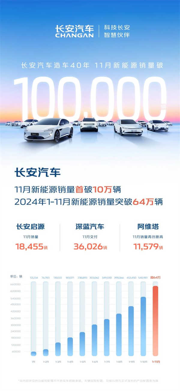 長安汽車11月新能源首破10萬輛 前11個月累計超64萬輛