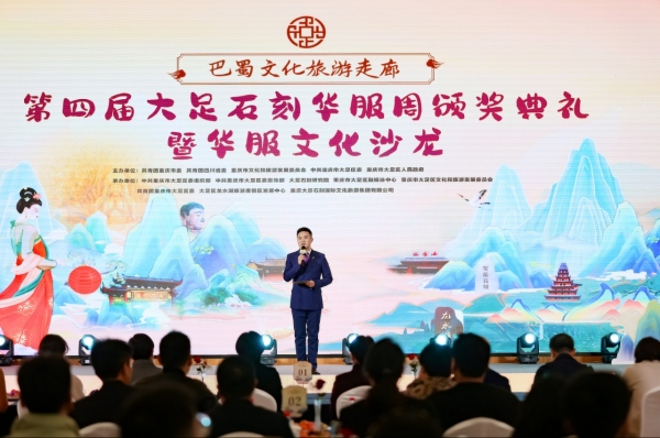 12月11日,“巴蜀文化旅游走廊—第四屆大足石刻華服周”頒獎典禮暨華服文化沙龍活動在大足石刻學術報告廳舉行。