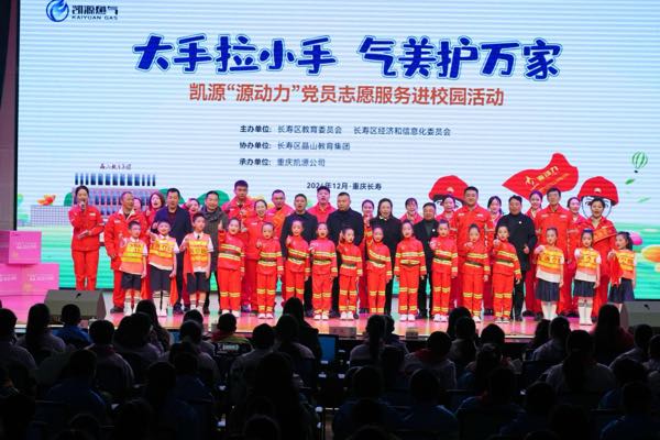 12月12日,重慶凱源公司(以下簡稱:凱源公司)聯合重慶市長壽區晶山教育集團,在晶山小學陽鶴校區舉行了以“大手拉小手 氣美護萬家”為主題的凱源“源動力”黨員志愿服務進校園活動,活動吸引了3000余名師生參與,旨在普及燃氣安全知識,增強師生的安全防范意識。