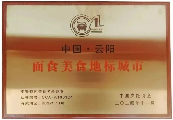 2024年12月1日,云陽縣榮獲“中國·云陽面食美食地標城市”榮譽稱號,是全國唯一雙地標城市,該獎項屬“國字號”榮譽。此次創建從申報到獲批僅80天時間,創造了該稱號有史以來“云陽見面”最快速度,也是同時獲批面食美食雙地標城市國家級榮譽的唯一案例。雙地標城市的成功創建,將為云陽縣面食產業發展“一碗面牽起千億產業鏈”打下堅實基礎。