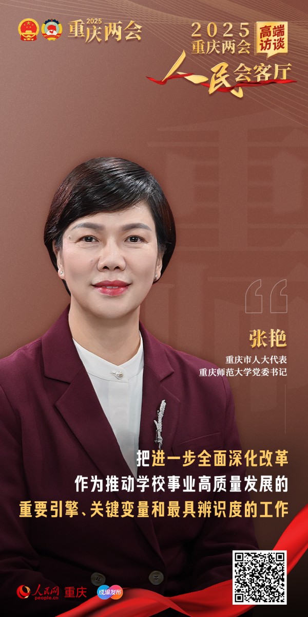 人民網重慶1月21日電 “當前,重慶師范大學正開啟新世紀以來學校發展歷程上的第三次改革新篇?!?025重慶兩會期間,重慶市人大代表、重慶師范大學黨委書記張艷做客人民網重慶頻道、成渝發布“人民會客廳——2025重慶兩會高端訪談”時表示,學校將突出七個聚焦,以奮進之姿、實干之舉,在新一輪全面深化教育綜合改革的浪潮中改出質效、改出特色、改出亮點。