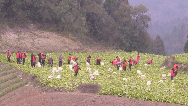 “真是太感謝你們了,要不是你們來及時幫忙,我們不知道還要忙多久……”看到堆碼整齊的青菜頭,曹道權感激之情溢于言表。