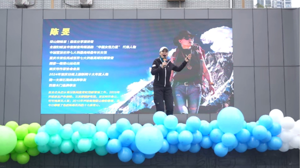 陳旻分享攀登經歷。江北區華渝實驗學校供圖