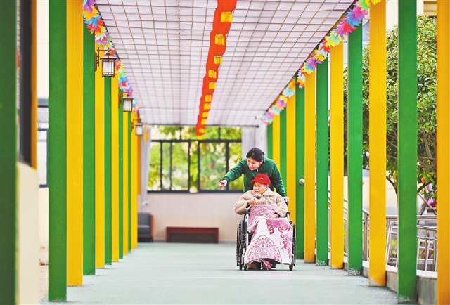 二月十七日,墊江縣墊康里頤年公寓,新建的風雨長廊讓老人在下雨天也能感受到戶外的美好。
