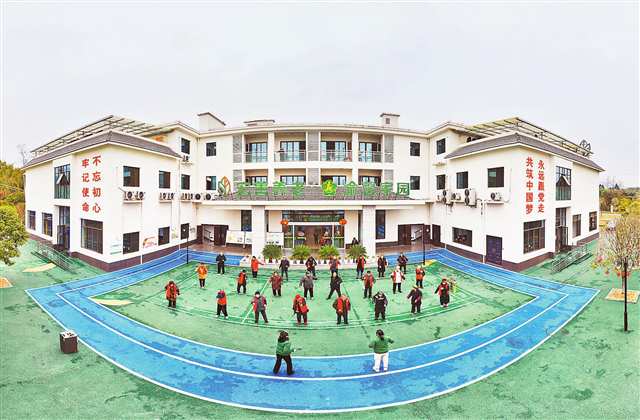 2月17日,澄溪鎮敬老院,老人們在操場上運動。