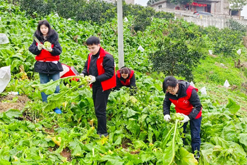 為解決青菜頭收期短、勞動力短缺等問題,中行重慶涪陵分行充分發揮青年在助力鄉村振興中的優勢和作用,主動聯合當地團區委赴涪陵區南沱鎮開展“助農收砍青菜頭 志愿服務青春行”主題活動。在認真聆聽農戶講解青菜頭收砍技巧和注意事項后,青年志愿者們擼起袖子、俯下身子,全身心地投入到搶收工作中,砍根、去葉、裝袋……經過一上午勞作,完成了數畝青菜頭收砍工作,切實為缺勞種植戶解決了燃眉之急。