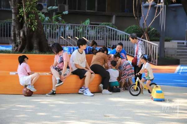 桂花園新村“童玩有趣”治理示范空間里,孩童與家長自得其樂。渝中區委宣傳部供圖