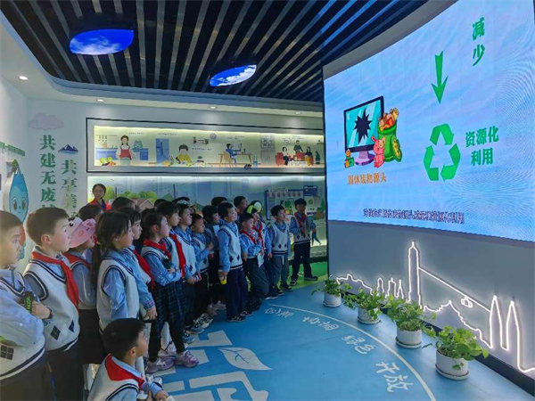 在“無廢城市”宣傳教育基地,同學們通過觀看展覽、漫畫、知識問答、自行車騎行等互動環節,深入學習“無廢城市”理念、垃圾分類及資源循環利用等內容,進一步提升了生態環境保護意識。