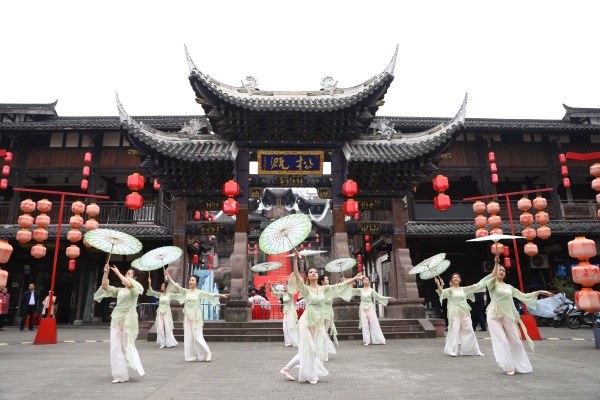 此次文化節創新“文化+旅游+消費”模式,推出“孝親劇本殺”“長江取水儀式”“漢服快閃巡游”等特色活動。游客可化身NPC參與劇情互動,在青石板街巷中探尋孝親故事,亦可駐足非遺市集,體驗糖畫、油紙傘制作等技藝,感受傳統文化的現代表達。同時,川劇變臉、柔術滾燈、魔術《化蝶》等非遺表演,在玉皇觀舞臺輪番上演,讓游客們領略傳統技藝的無限魅力。