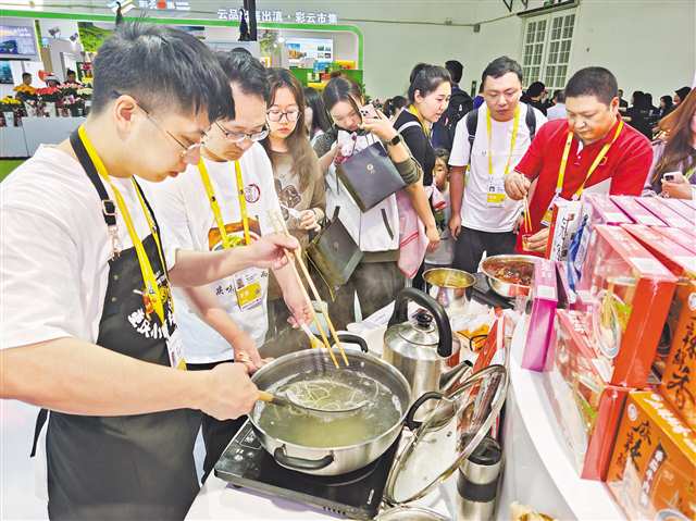 “我們有網店,你可以線上下單,快遞到家?!惫ぷ魅藛T回答道。聽到介紹,該觀眾立刻拿出手機,現場下單了幾盒小面調料。