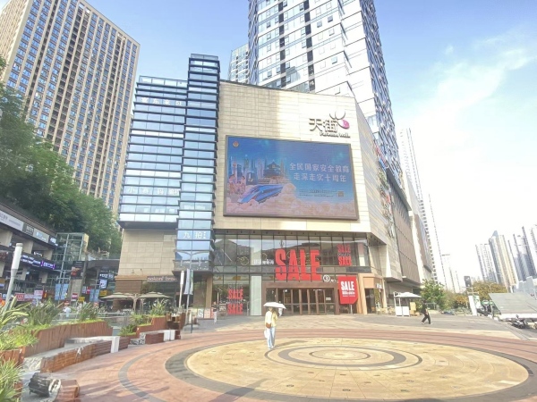 利用商圈大屏滾動播放宣傳視頻。石馬河街道供圖