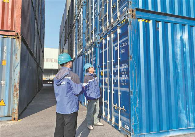 沙坪壩區團結村站,渝新歐工作人員仔細檢查重慶中歐班列的集裝箱。(攝于2025年1月29日)通訊員 郭晉 攝/視覺重慶