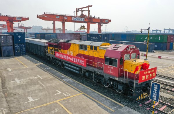 重慶-東盟木薯粉貨運班列。郭晉攝
