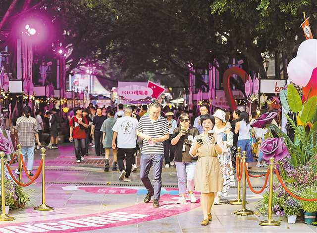 四月十八日,二○二五重慶國際咖啡節在渝中區解放碑十字金街拉開帷幕,吸引眾多市民、游客前來逛展品鑒。記者 尹詩語 攝\視覺重慶