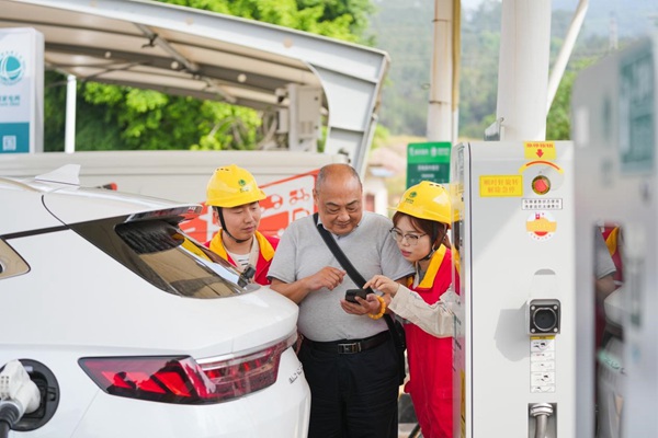 國網重慶永川供電公司員工在榮昌高速服務區引導新能源車主充電。國網重慶永川供電公司供圖