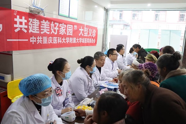 專家團隊來到村里進行義診。重醫附屬大學城醫院供圖