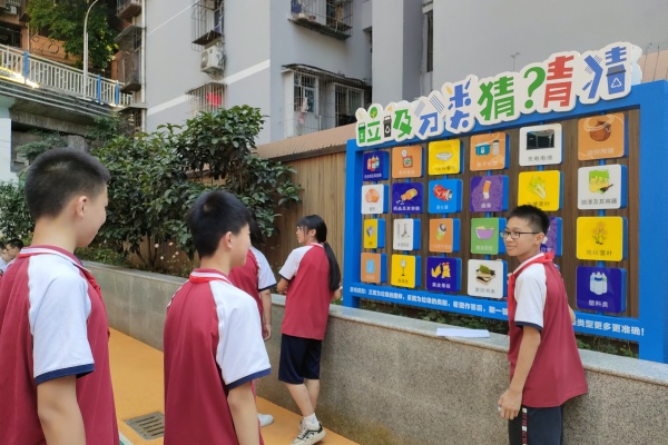 立足轄區豐富的教育資源,街道加強與轄區14所中小學校、幼兒園以及社會單位、學生家庭的聯系合作,將垃圾分類知識納入校本課程和主題班會,建成垃圾分類“校園一角”14個,發放《生活垃圾分類指導手冊》《告居民一封信》等,通過校園活動、校外桶邊督導等方式,引導樹牢“綠色、低碳、環?!崩砟?,達到“教育孩子、影響家庭、帶動社會”的效果。當天,參會人員參觀了重慶市第二十九中學實驗學校生活垃圾分類工作開展情況。