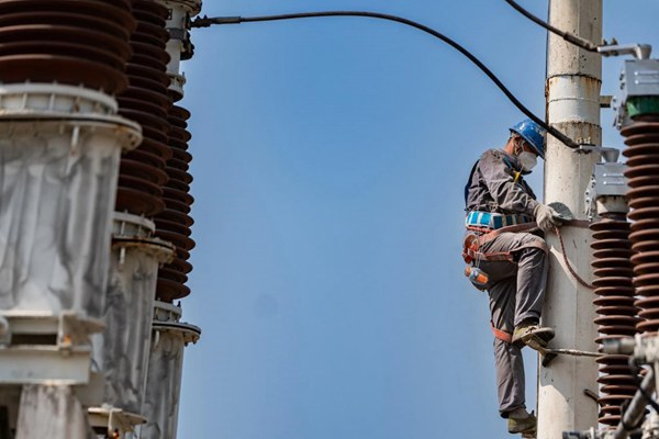 工作人員爬桿檢修設備。國網重慶永川供電公司供圖