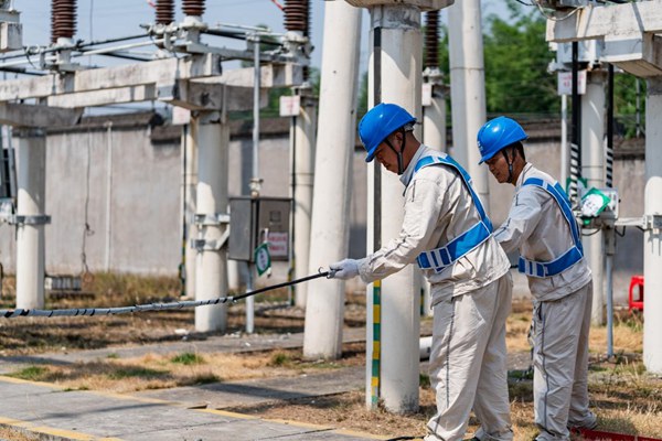工作人員施放線纜。國網重慶永川供電公司供圖