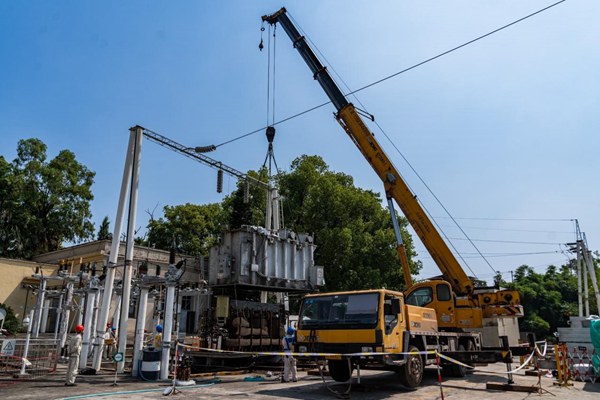變電站主變吊罩作業。國網重慶永川供電公司供圖